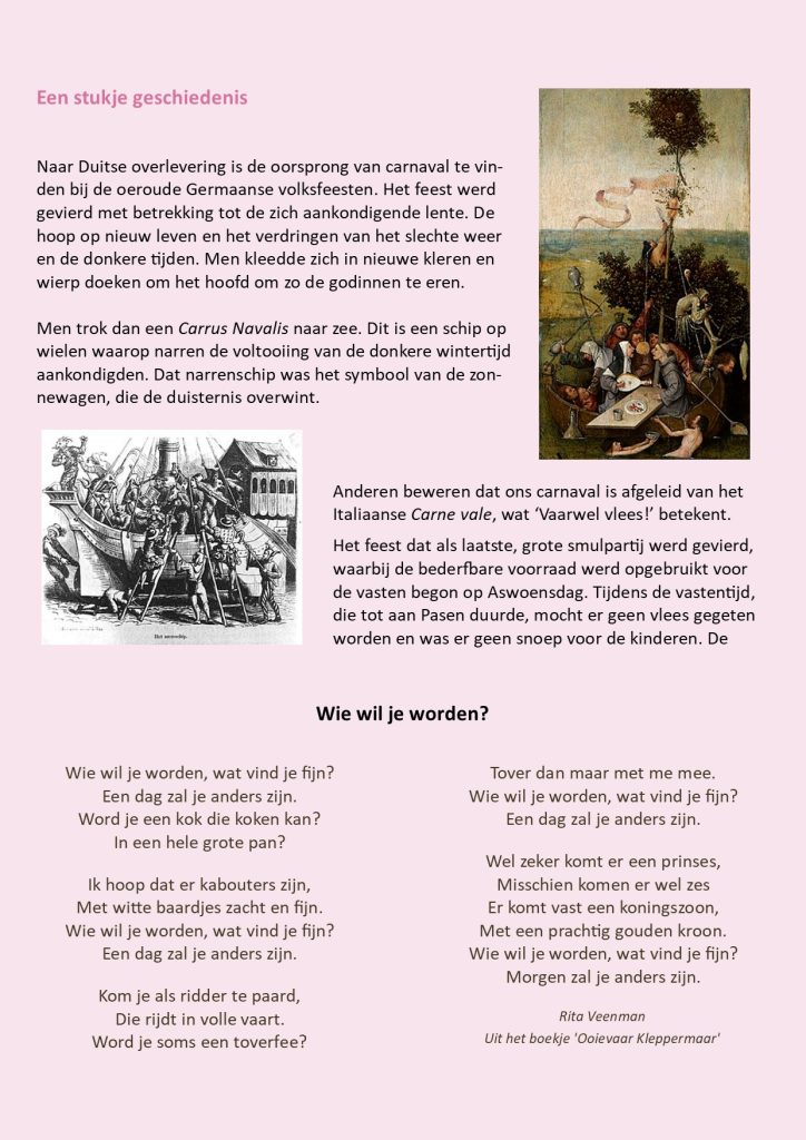 Naar Duitse overlevering is de oorsprong van carnaval te vinden bij de oeroude Germaanse volksfeesten. Het feest werd gevierd met betrekking tot de zich aankondigende lente. De hoop op nieuw leven en het verdringen van het slechte weer en de donkere tijden. Men kleedde zich in nieuwe kleren en wierp doeken om het hoofd om zo de godinnen te eren.